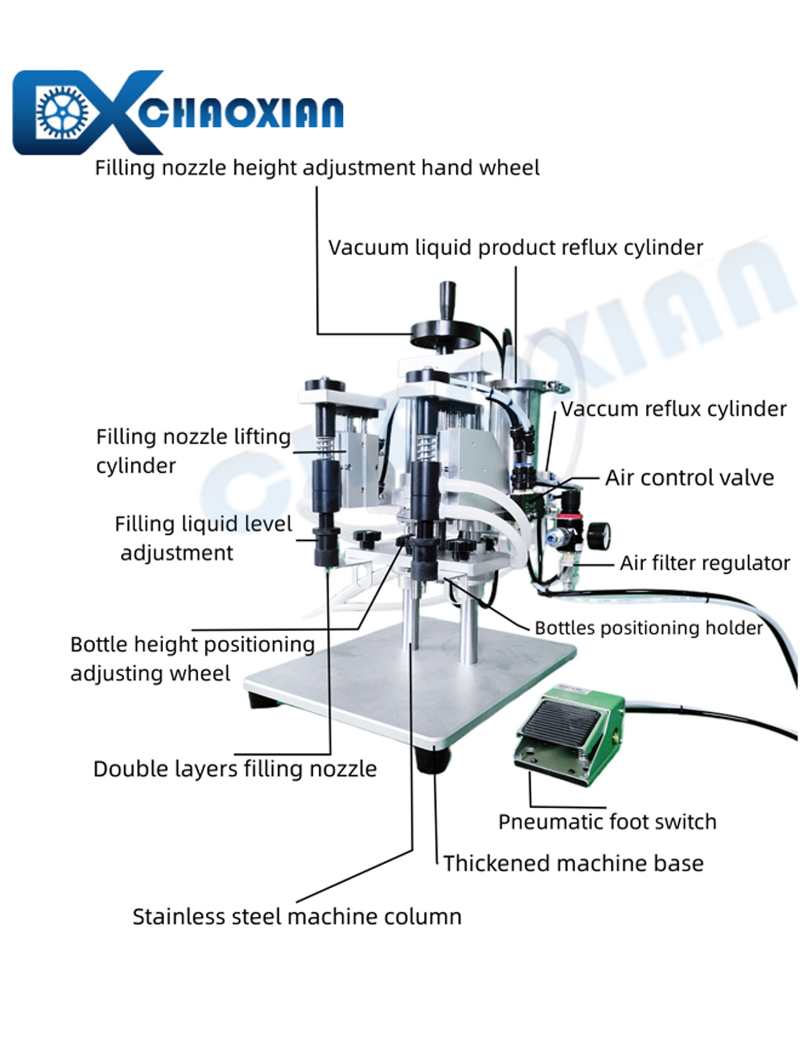 CX Semi-automatic Two Filling Heads Vacuum Bottle Perfume Filling Machine
